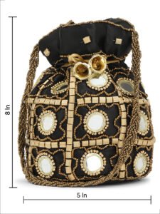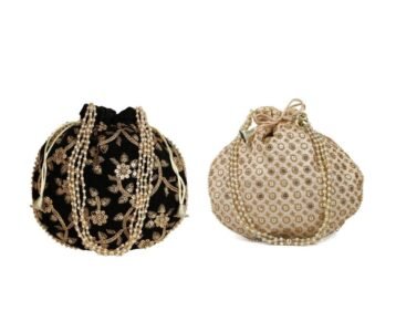 Combo – Designer Embroidered Potli Bag – Golden & Black