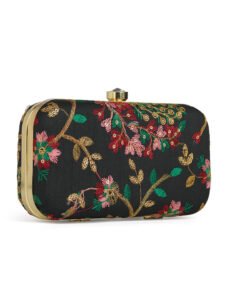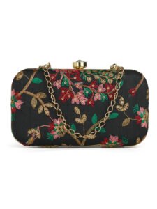 Black & Gold Embroidered Box Clutches For Girls and womens