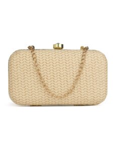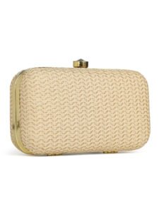 Beige & Gold Embroidered Box Clutches For Girls and womens