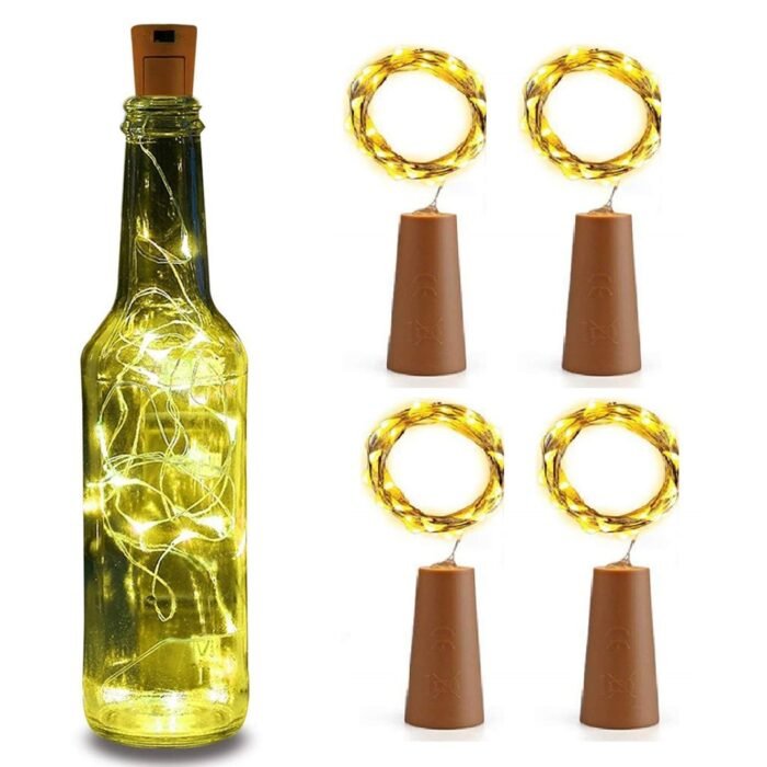 Home Home and Kitchen 20 LED Wine Bottle Cork Lights, Copper Wire String Lights, 2 Meter Battery Operated Fairy Lights, Bottle DIY, Christmas, Wedding Party (Warm White, Pack of 4)