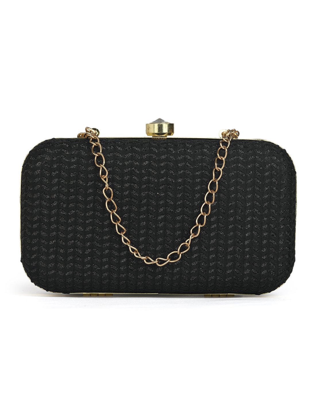Home W_Bags Clutches Black & Gold Embroidered Box Clutches For Girls and womens