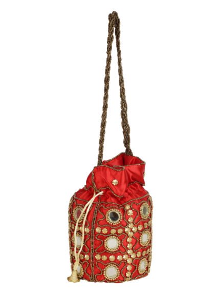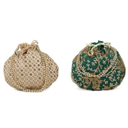 This product is a combo of tow Embellished potli bags having wrist loop 1 main compartment each with drawstring closure. Size & Fit Size of each potli bag : 9 x 9 x 3 Inch (Length x Width x Depth ) Material & Care Fabric Wipe with clean, dry cloth