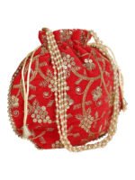 Combo – Designer Embroidered Potli Bag – Golden & Red