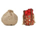 Combo – Designer Embroidered Potli Bag – Golden & Red