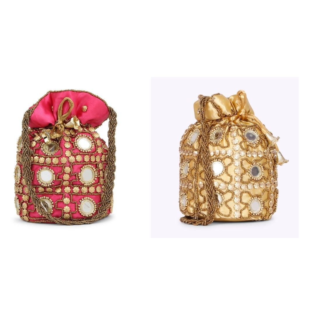 Combo – Designer Embroidered Potli Bag – Golden & Pink