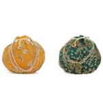 Combo – Designer Embroidered Potli Bag – Yellow & Green