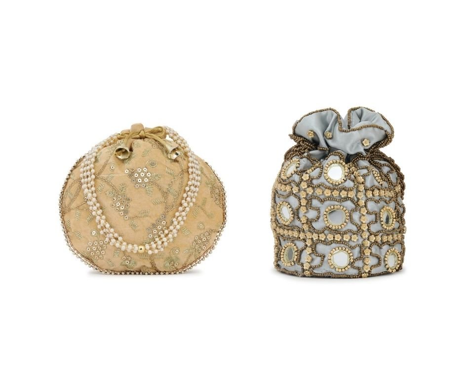 Combo – Designer Embroidered Potli Bag – Golden &White