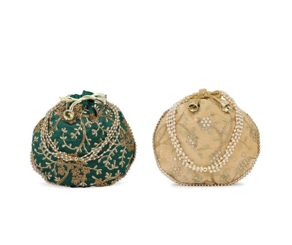 Be the first to review “Combo of Beige & Green Color Designer Embroidered Potli Bag” Cancel reply