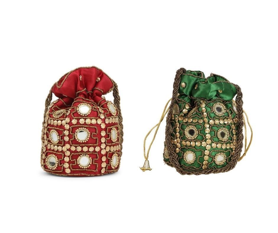Combo – Designer Embroidered Potli Bag – Golden & Red