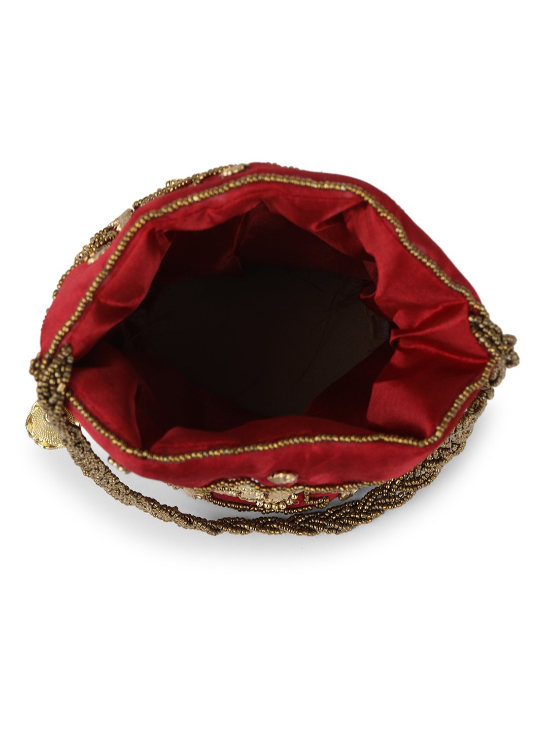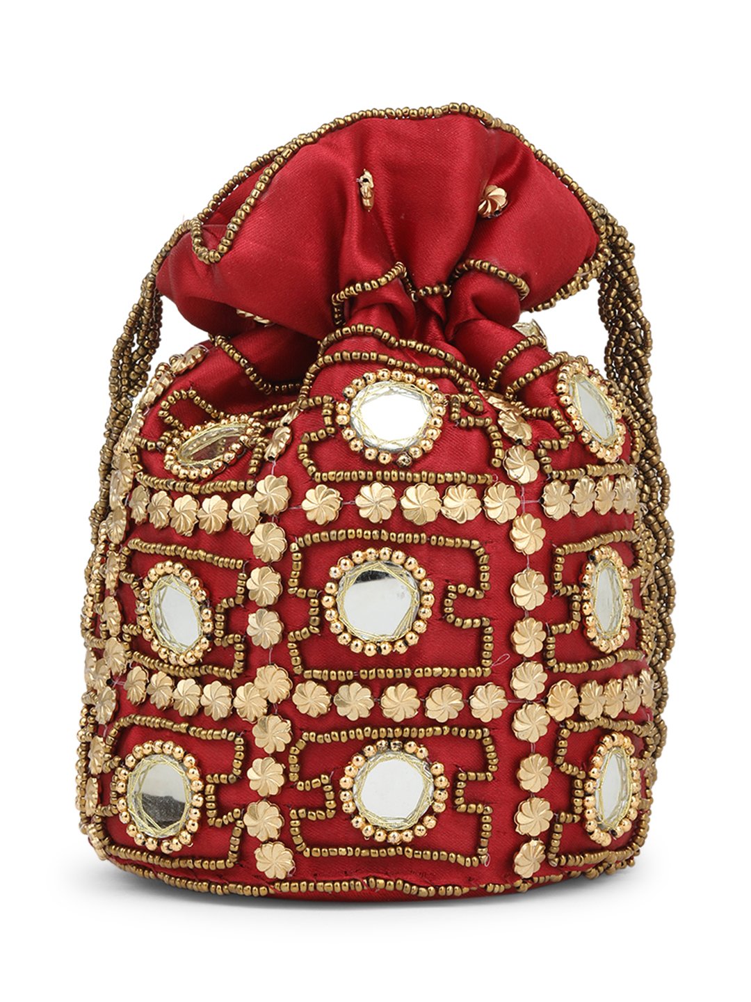 Maroon embellished potli Has wrist loop 1 main compartment with drawstring closure Size & Fit Size : 9 x 9